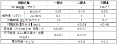 注2:由于一级水的纯度下,难于测定可氧化物质和蒸发残渣,对其限量不做规定,可用其他条件和制备方法来保证一级水的质量。