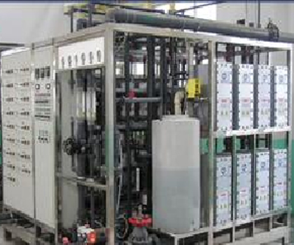 EDI (Electrodeionization)又称连续电除盐技术,它科学地将电渗析技术和离子交换技术融为一体,通过阳、阴离子膜对阳、阴离子的选择透过作用以及离子交换树脂对水中离子的交换作用,在电场的作用下实现水中离子的定向迁移,从而达到水的深度净化除盐,并通过水电解产生的氢离子和氢氧根离子对装填树脂进行连续再生,因此EDI制水过程不需酸、碱化学药品再生即可连续制取高品质超纯水。